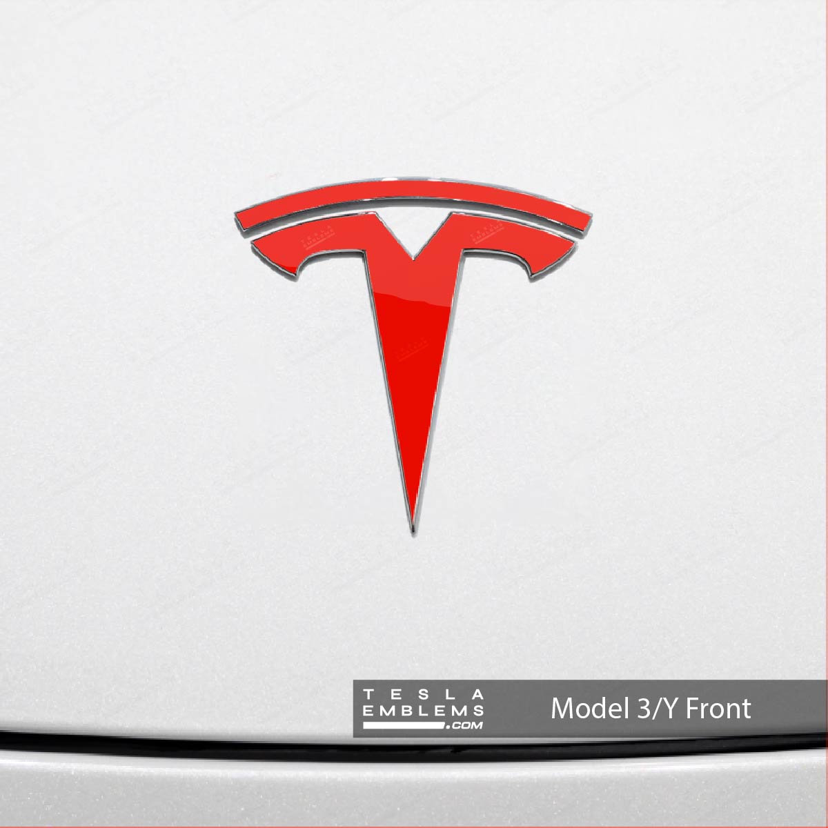 3M Gloss Hot Rod Red Tesla Emblem Decals (Front + Back)