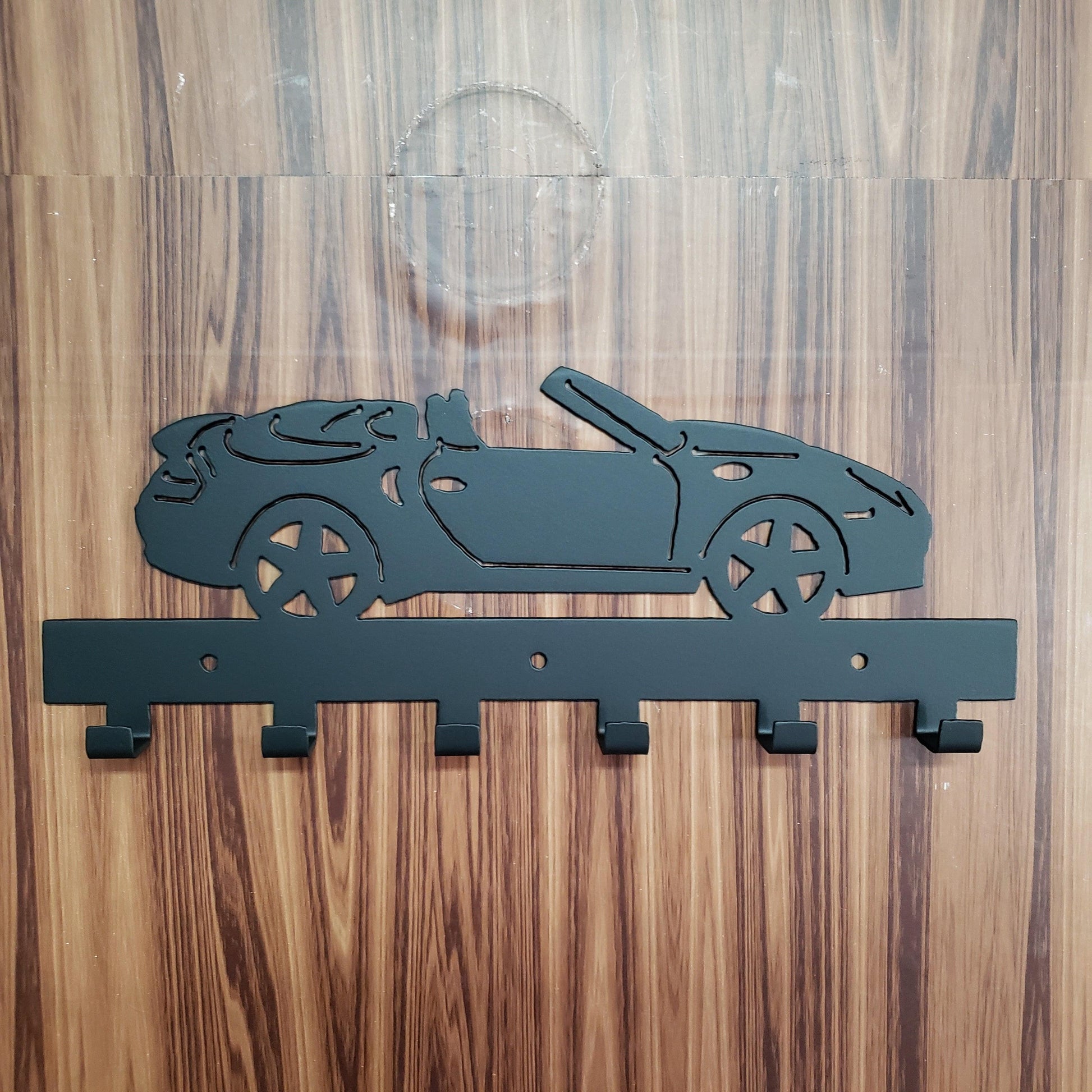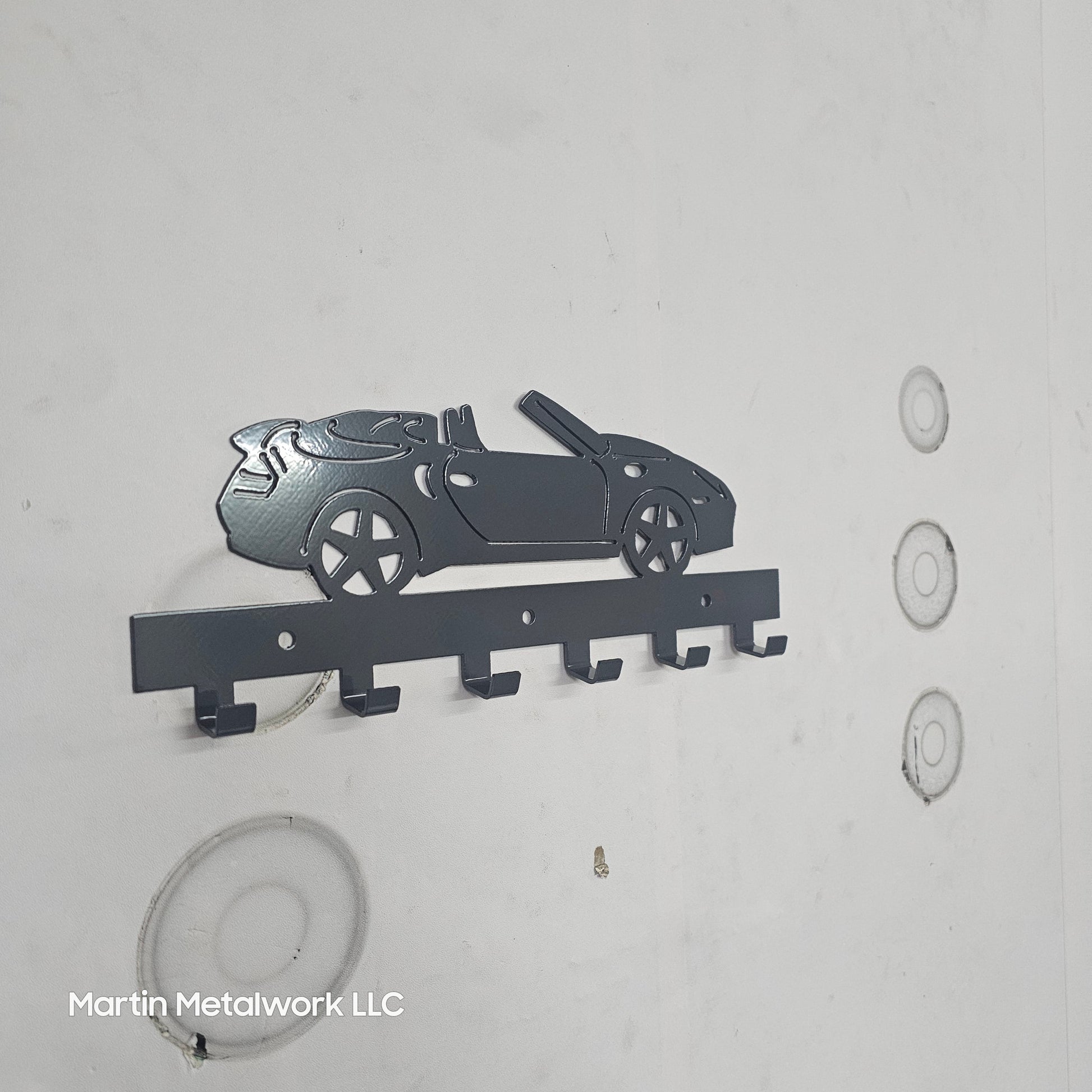 Porsche 911 Convertible Key Hanger – Steel Wall Mounted Key Rack – Sport Car Organizer 12"x6" Garage Entryway Decor
