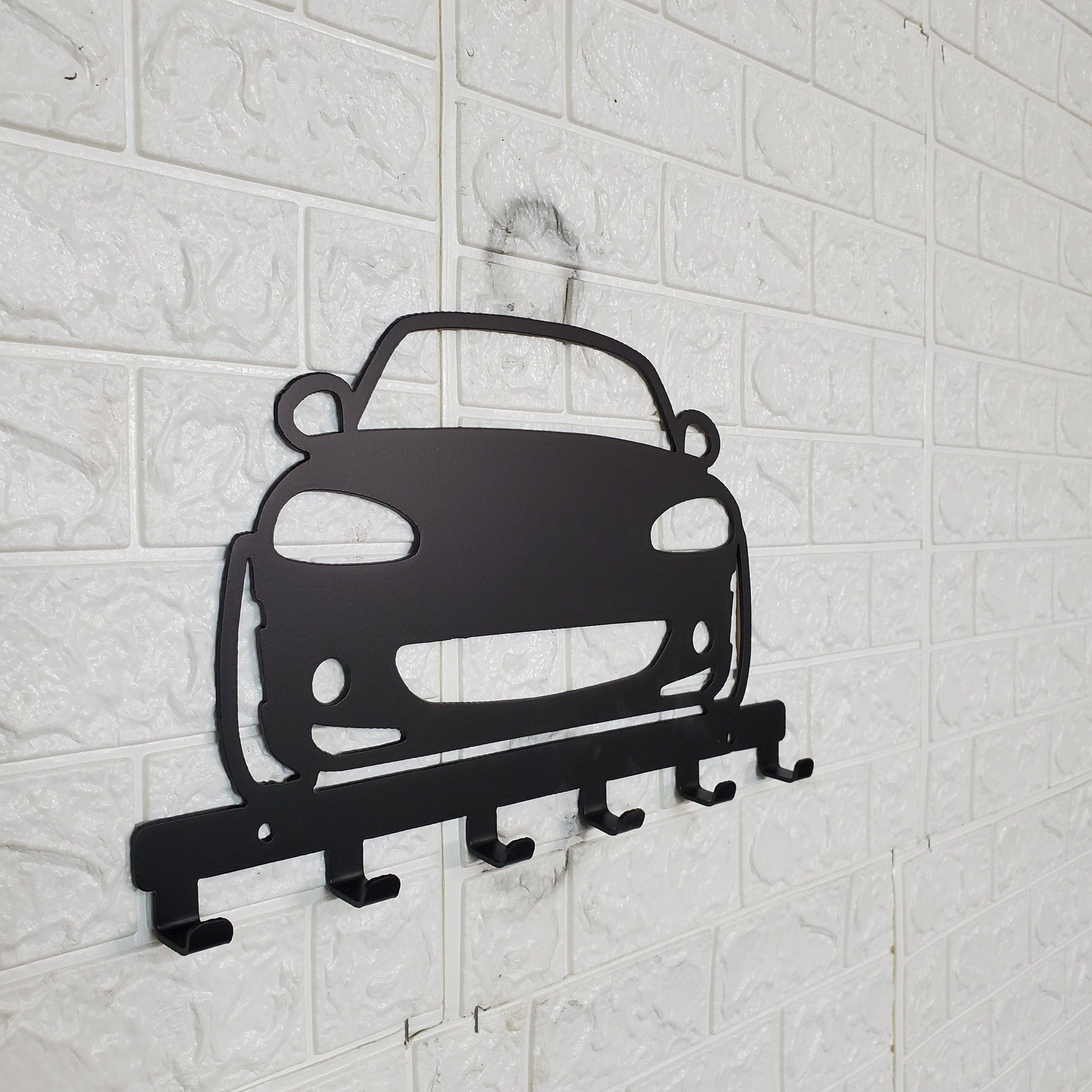 Add some personality to your home with our custom 14 gauge steel Mazda Miata second generation (NB) key hanger. These key hangers are made of high-quality steel and coated with a durable powder finish in your choice of color. Measuring 12 inches wide and 7 inches tall, this key hanger is the perfect size to keep your keys organized and within reach. Whether you choose a classic color like black or silver, or go for something bold like red or blue, this key hanger is sure to make a statement. Order yours today and bring some car enthusiast flair to your home decor.