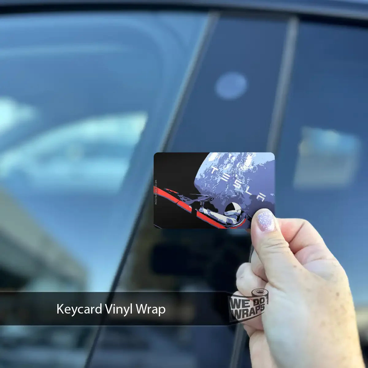 Blast off into style with our Space Roadster Keycard Decal, embodying the interstellar spirit of the Tesla Roadster.